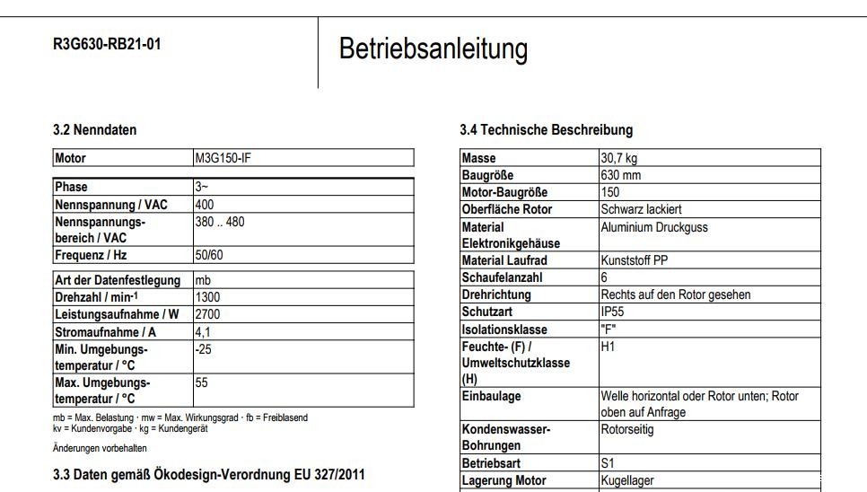 R3G630-RA38-21电压:200-277V电流:6.20A功率:1415W 转速:1030/min 重量:25.0KG
