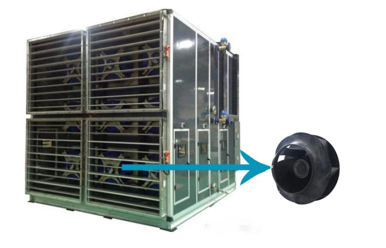 AHU风机主要是抽取室内空气(return air)和部份新风以控制出风温度和风量来维持室内温度。基于外转子技术的EC风机, 有效节约了皮带传动或内转子传动轴占用的空间,非常适合AHU改造工程,基于原AHU系统,加入PM2.5滤除段后,空间更小、阻力更大,要求更大风量。
