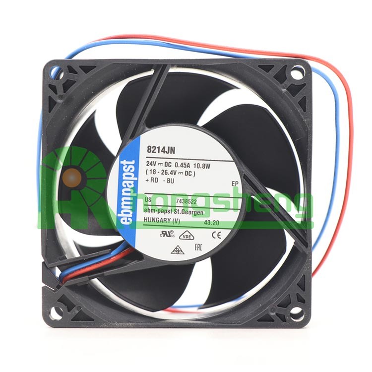 EBM-PAPST 8214JN DC Fan Axial Ball Bearing 24V 18V to 26.4V 78CFM 55dB (80 X 80 X 38mm)