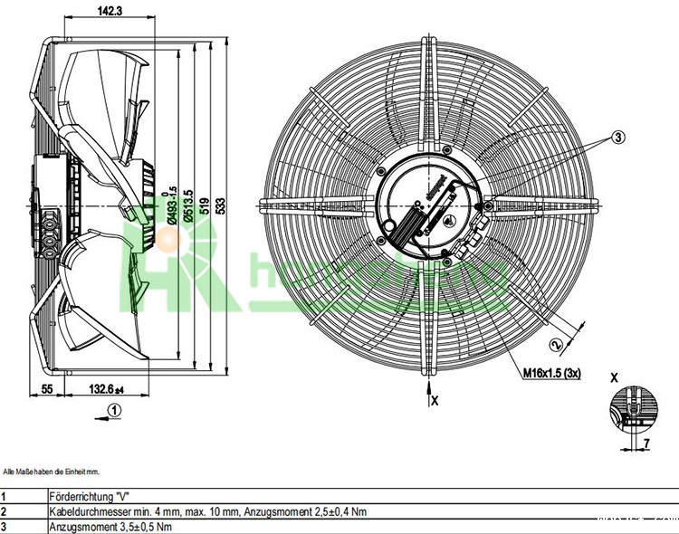 EBM-Papst S3G500-BE33-01 Axial Fan 500mm 400V 380V to 480V 1050w 1440RPM