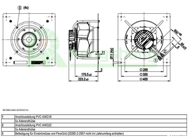 EBM-Papst K3G280-RR03-H2 Blowers & Centrifugal Fans 280mm 230VAC 500W 2700RPM