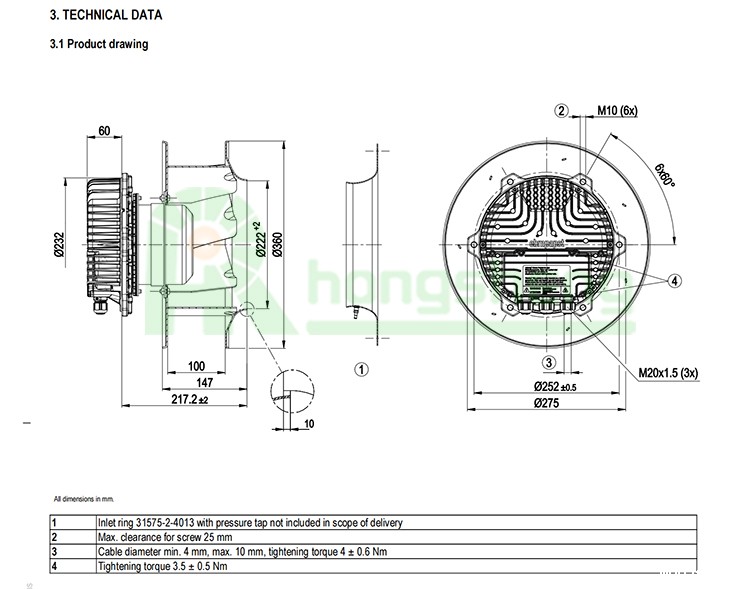 EBM-Papst R3G310-BB49-31 Blowers EC Centrifugal Blower, 400VAC, 1650W, 3140RPM