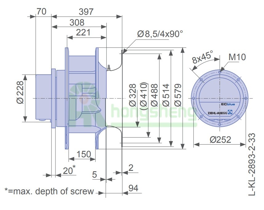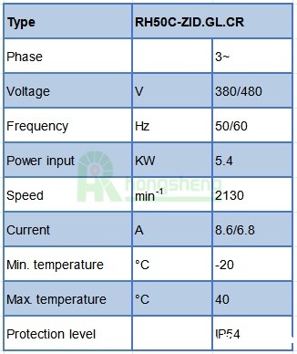Ziehl-Abegg RH50C-ZID.GL.CR 380/480V 50/60Hz 5.4KW 2130RPM 8.6/6.8A