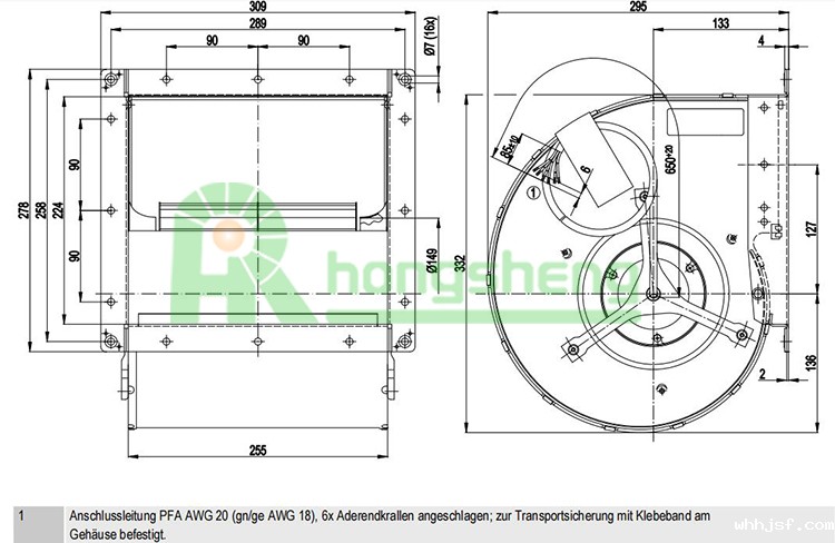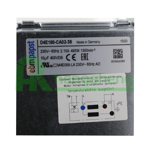 EBM-Papst D4E180-CA02-36 Blower, 2 Inlet, 230VAC, 180mm, Scroll, 665 CFM, 495W, 1280RPM, Leadwires