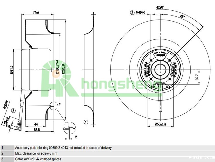EBM-Papst R1G220-AB73-52 Centrifugal Blower 220.9 (Dia.) x 71mm, 1015m3/h, 48 V dc (R1G220 Series)