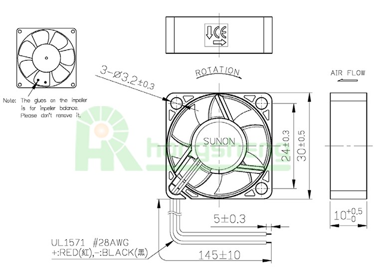 SUNON MF30101V2-1000U-A99 Fan, Axial, 12VDC,30*30*10mm,4.6CFM,0.7W,8600RPM,20dB