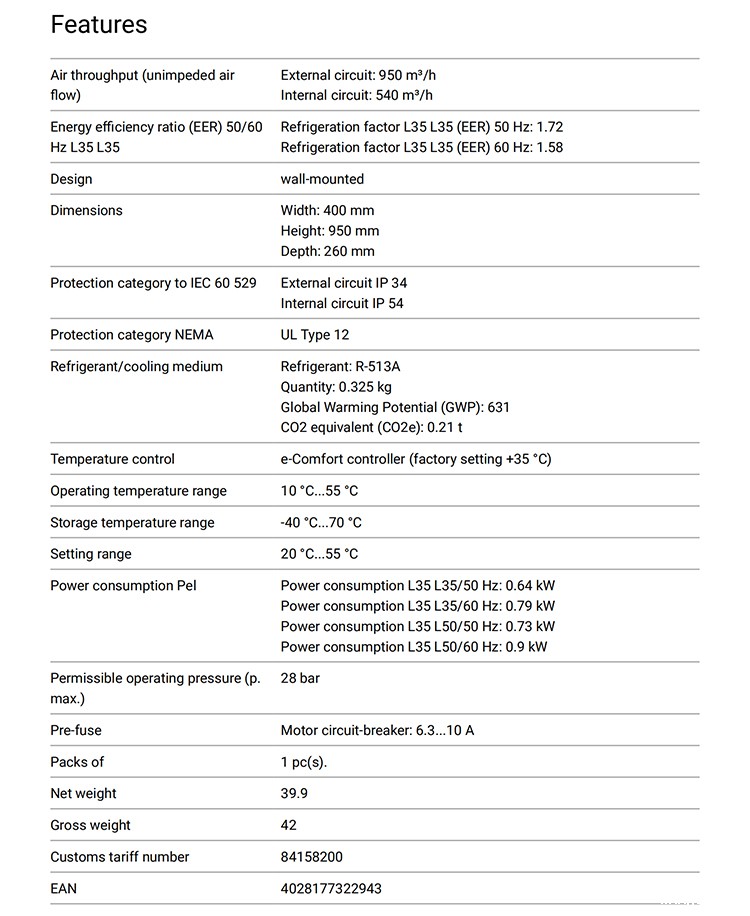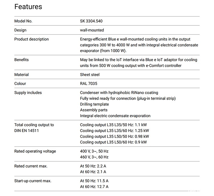 Energy-efficient Blue e wall-mounted cooling units in the output categories 300 W to 4000 W and